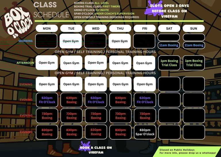 Boxing classes, Open-gym Self Training (for month to month membership only), Personal Training